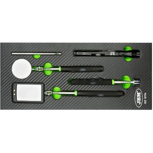 5-osaline komplekt magnettõstikute, peeglite ja LED valgustiga PU-paneelil. Sobib tööriistakärusse või lauasahtlisse.