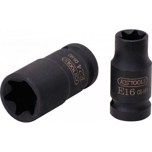 KS Tools 1/2″ lühike Torx E20 löökpadrun kroom-molübdeenterasest, fosfaatpinnaviimistlusega. Sobib löökmutrikeerajatele.