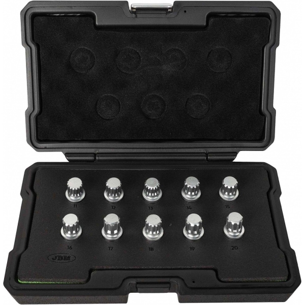 JBM 10-osaline vargapoltide ja vargamutrite avamise tähikkomplekt on mõeldud spetsiaalselt BMW sõidukite turvakinnituste eemaldamiseks. Komplekt sisaldab nuuttähikuid, mis sobivad originaalsete BMW vargapoltide analoogidena.