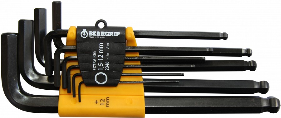 Pikad L-kuuskantvõtmed kuulpeaga, mis võimaldab keeramist ka nurga all. CrV eriteras, matt pinnatöötlus. Riputuspakendis.