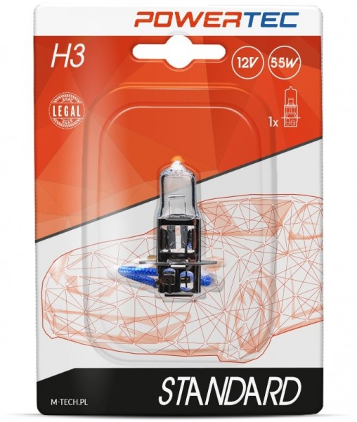 12V H3 PIRN 55W PK22S POWERTEC +30% BLISTER M-TECH
