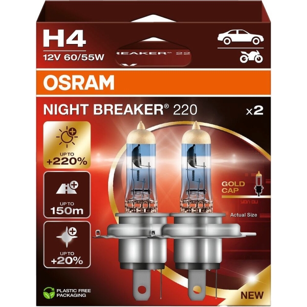 12V H4 PIRN 60/55W P43T NIGHT BREAKER +220% 2HB 2TK OSRAM