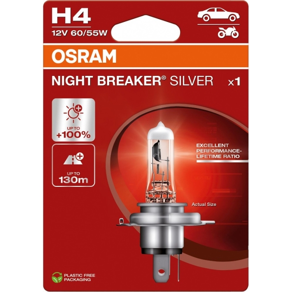 12V H4 PIRN 60/55W P43T NIGHT BREAKER SILVER +100% BLISTER 1TK OSRAM