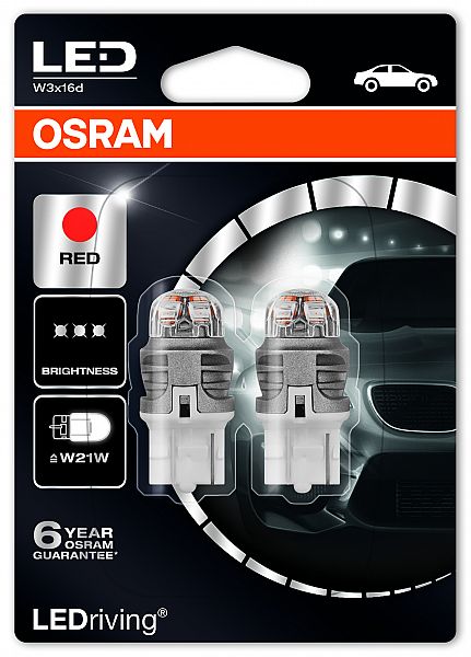 12V T20 LED PIRN 1,5W W3X16D W21W PUNANE PREMIUM BLISTER 2TK OSRAM