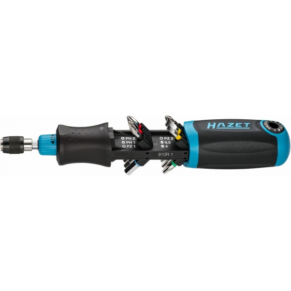 Ühesuuna siduriga. Suund on muudetav. Otsikuid hoiustatakse käepideme sees.