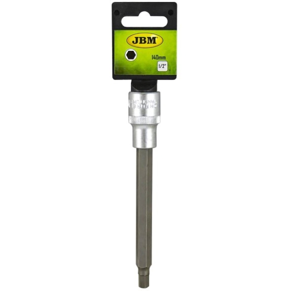 14mm ekstrapikk kuuskant padrunotsik 1/2″ draiviga, pikkus 140mm, satiinviimistlusega CR-V teras, riputiga, tootja JBM