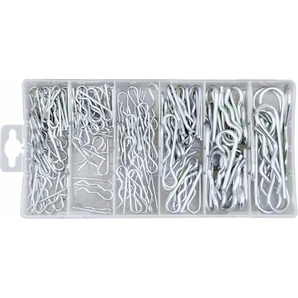 Ümarprofiilide lukustamiseks mõeldud klambersplintide komplekt, 6 erinevat mõõtu (150 tk).