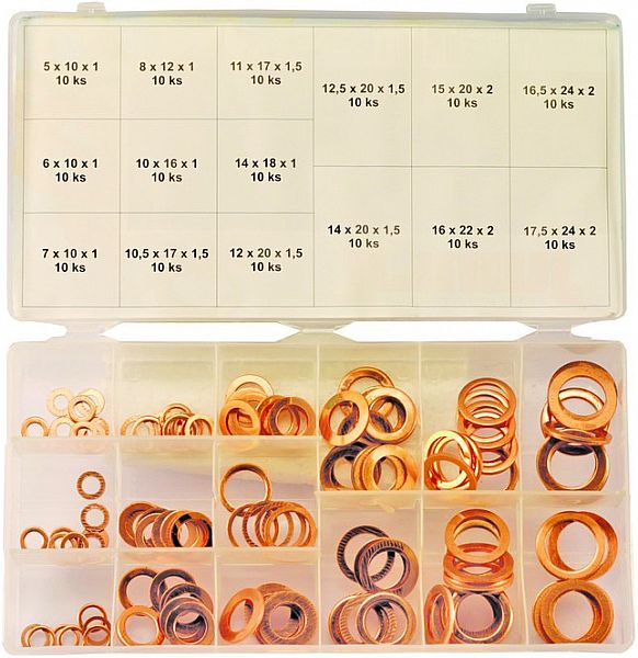 Vaskseibid: 5x10x1 – 6x10x1 – 7x10x1 – 8x12x1 – 10x16x1 – 10,5x17x1,5 – 11x17x1,5 – 12x10x1,5 – 12,5x20x1,5 – 14x18x1 – 14x20x1,5 – 15x20x2 – 16x22x2 – 16,5x24x2 – 17,5x24x2 mm.