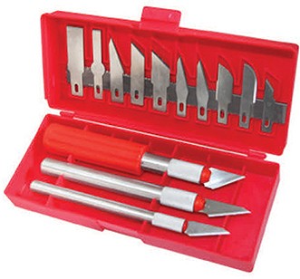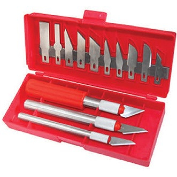 Skalpellnoad, mille terad vahetatavad. 13 erinevat tera. Käepidemed. Plastkarbis.