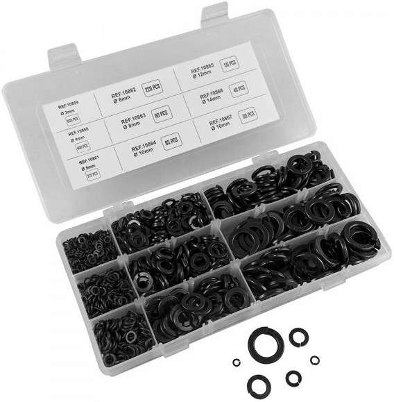 Musta värvi lukustusseibide komplekt, mida kasutatakse fosfaaditud poltidel. Mõõdud 3-4-5-6-8-10-12-14-16 mm. Plastkarbis.