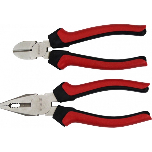 Komposiitkäepidemega (plast+kumm), CrV eriterasest, komplektis külglõiketangid ja näpitstangid.