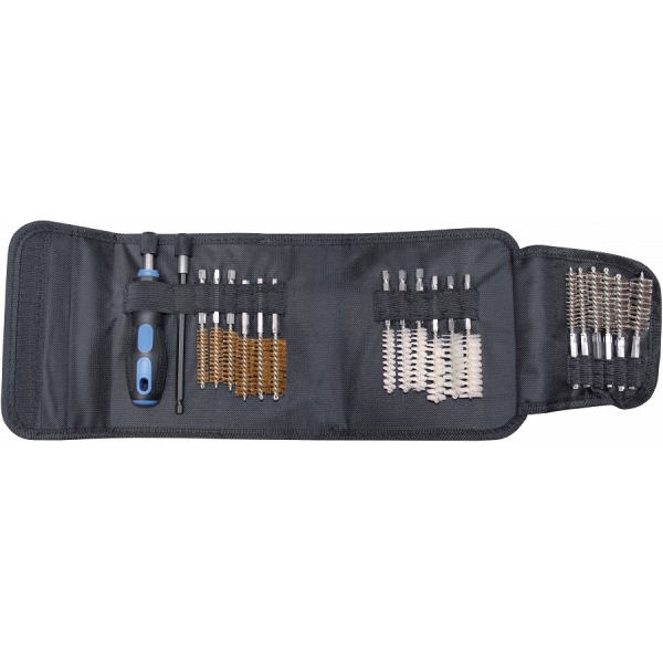 Vahetetava otsaga silinderharjaste komplekt. Eri kõvadusega ja eri materjalist harjased. Läbimõõdud 9-11-13-15-17-19 mm. Tekstiilkotis.