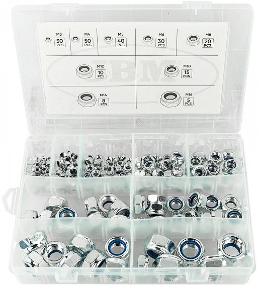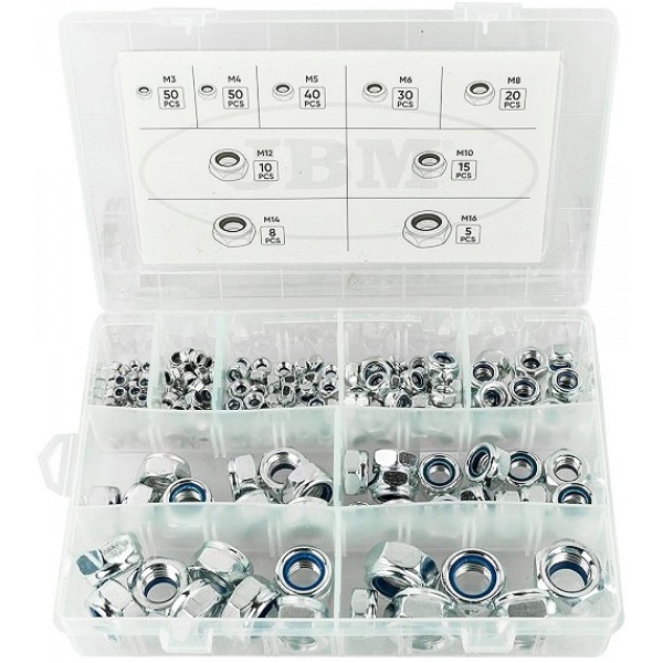 Fikseerimiskraega mutrite komplekt. Sisaldab mõõte M3-M4-M5-M6-M8-M10-M12-M14-M16. Galvaaniliselt töödeldud.