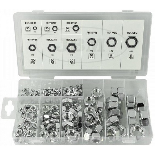 Sisaldab mõõte M3-M4-M5-M6-M8-M10-M12-M14-M16. Galvaaniliselt töödeldud.