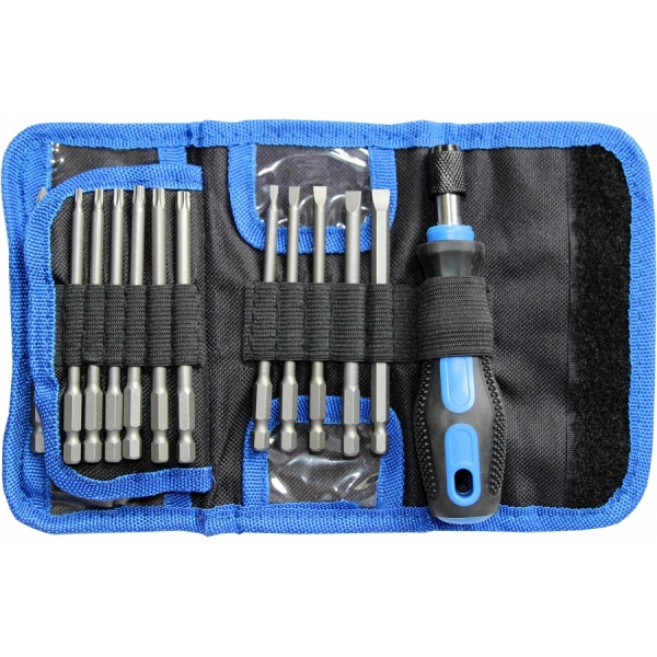 Vahetatavate otsikutega (pikad), komposiitpeaga kruvikeeraja komplekt. Komplekt sisaldab kõik enamlevinud mõõdud.