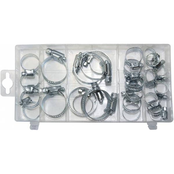 Komplektis 6 erinevat mõõtu (26 tk). 16-40 mm läbimõõduga voolikutele. Klambrid Ø 16-8 tk; Ø 22-6 tk; Ø 25-4 tk; Ø 28-2 tk; Ø 35 -2 tk; Ø 40-4 tk.