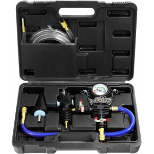 Vaakumtäitmise komplekt jahutusvedeliku vahetamiseks ilma õhukorkideta. Töötab suruõhuga, plastikust kohvris.