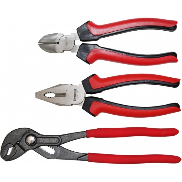 Komposiitkäepide (plast+kumm), CrV eriterasest, komplektis külglõiketangid, näpitstangid ja nupplukustusega kullinokad.