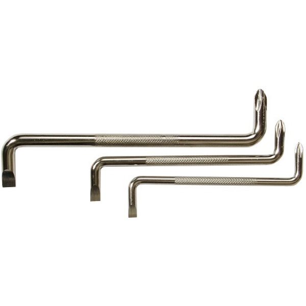 Klassikaline S-kruvikeerajate komplekt. Ristkruvikeeraja PH1-PH2-PH3, lapikkruvikeeraja SL5-SL6-SL8. Hoideosas rihveldus, kroomitud pinnatöötlus.