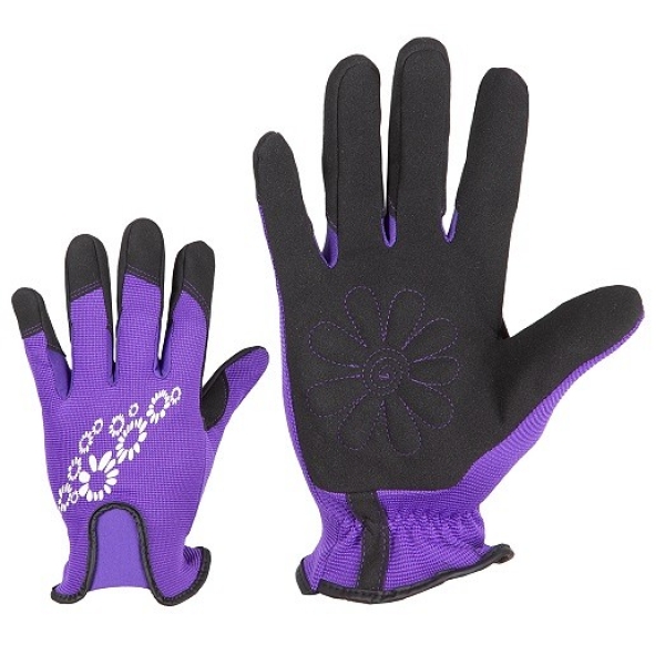Väga mugavad, vastupidavad ja stiilsed töökindad aias töötamiseks. Töökindad toodetud vastupidavast mittelibisevast originaal AMARA nahast, mis tänu oma elastsusele tagab hea sõrmeotste tundlikkuse. AMARA nahast peopesa, sõrmeotsad ja nimetissõrm. Peopesas lillekujuline pehmenduspadi, mis annab aiatööriistadega töötamisel lisamugavuse ja vähendab vibratsiooni. Käe arteri kaitseks on õmmeldud eraldi nahatükk. Töökinnastel lillat värvi polüestrist käeselg stiilse lillelise mustriga. Käeseljal veniv lõhik, mis tagab lisamugavuse kätte tõmbamisel ja ära võtmisel.