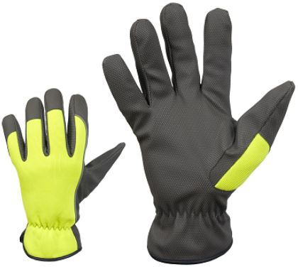Sünteetilisest nahast, fliisvoodriga, kõrgnähtavusega, väga hea haarduvus, vetthülgav Microthan® polüuretaan nahast peopesa, nimetissõrm, sõrmeküljed ja -otsad, tugevast tuulekindlast Spandex materjalist käeselg, elastne sisseõmmeldud kummipael 360°, helkurpael nimetissõrmel, kroomivabad.