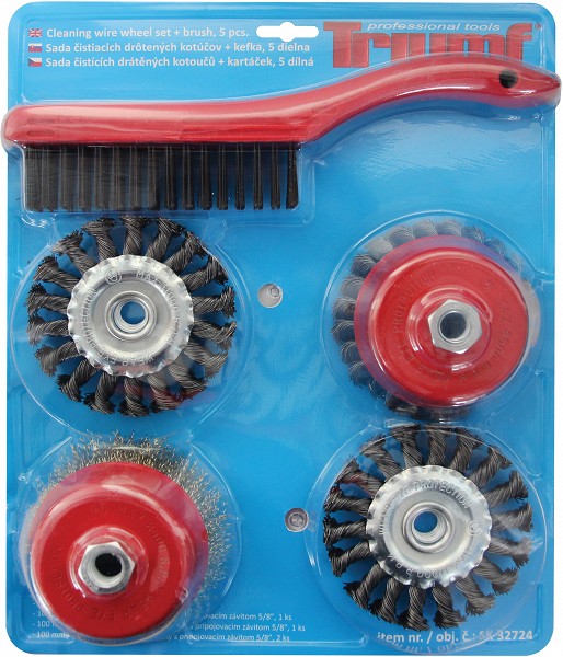Ketasharjade komplekt. Tava- ja kaussharjad. Sõlmharjastega. Kinnitatav otse M14 keerme otsa. Lisaks käsihari. Riputuspakendis.