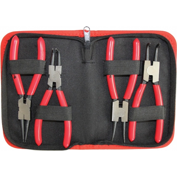 Lukustusrõnga näpitsate komplekt. 150/2 mm pikkused. Plastiga kaetud pidemeosa. Tekstiilkotis.