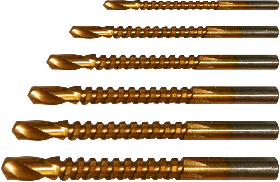 HSS kiirlõiketerasest, titaaniumkattega freespuurid. Pärast augu puurimist saab puuri freesteraga külgpinda kasutada ava freesimiseks.