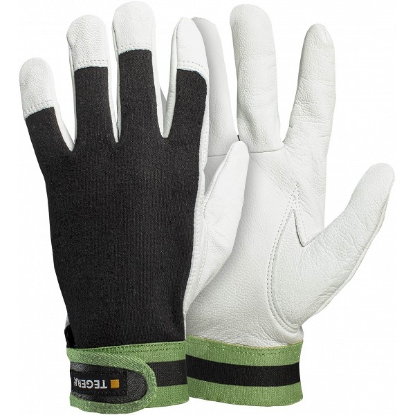 Seanahast, tekstiilist seljaosaga, takjaskinnitusega töökinnas lukksepa-, tööstus- ja ehitustöödeks. Pehme nahk tagab hea sõrmetunnetuse.