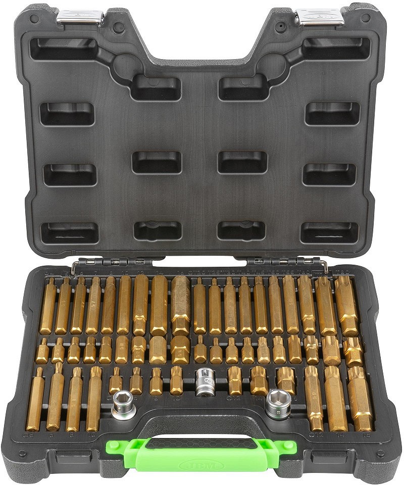 JBM valiku kõige tugevamad otsikud ja kõige katvama valikuga komplekt. Valmistatud S2 eriterasest. Spetsiaalse kuldse galvaanilise töötlusega. Komplektis pikad ja lühikesed otsikud. Kuuskant, Torx, 12-tähik. 30 mm ja 75 mm pikkused. Plastkohvris.