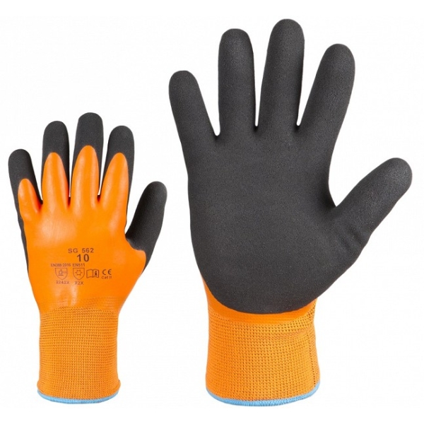 Veekindlad, mugavad ja suurepärase haarduvusega töökindad. Esimene kiht 3/4 lateksiga kaetud + teine kiht + vaht-lateksiga kaetud peopesa tagab hea niiskus- ja kulumiskindluse ja mehaanilise vastupidavuse. Töökinnastel suurepärane külma- ja niiskusekaitse. Kude ehk silmade arv 13. Hea haare kuivades ja niisketes oludes.