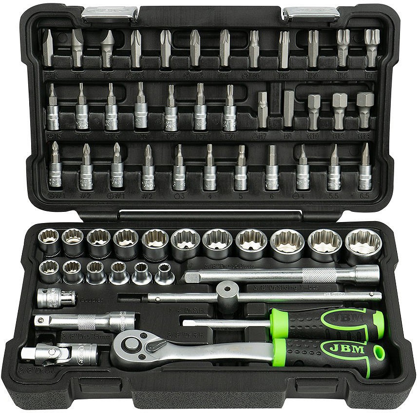 Universaalne tööriistakomplekt kodukasutusse, DYI ja väiksematesse töökodadesse. 12-kant profiiliga padrunid. Matt pinnatöötlus. Kohvri lukustid on terasest. Tugev, uue põlvkonna plastkohver.