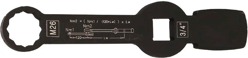12-kant profiiliga löökvõti. Kasutatakse pidurisadula ja pidurikambri poltide lahti keeramisel. 3/4″ keeramisava adapteriga. Lai löögipea võimaldab lüüa külgedelt ja/või otsast. Pikkus 226 mm. Kasutatakse DAF 105 ja DAF 106 sillatöödel.