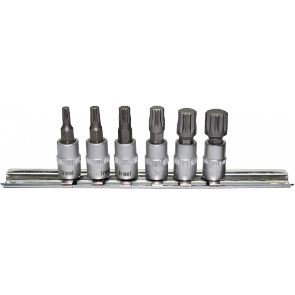 Metallsiinil 12-tähik padrunotsikute komplekt. Kõik enamlevinud mõõdud. Padrun CrV eriterasest, otsik S2 eriteras. Blisterpakend.