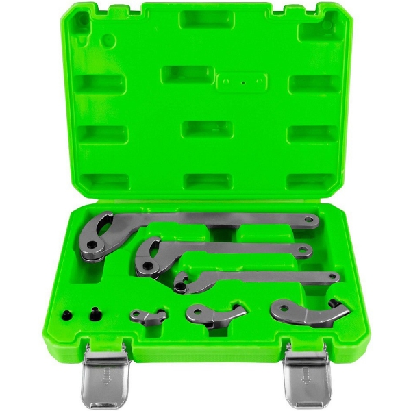Haakvõtmete komplekt, mis katab enamlevinud mõõdud. Kolm võtit kogupikkusega 160-177-250 mm, läbimõõtudele 35-120 mm. Komplektis kaasas ka varu-PIN otsad. Plastkohvris.