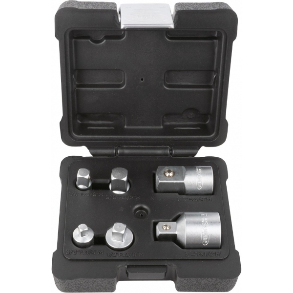 Suurendus- ja vähendusadapterite komplekt. CrV eriterasest. Satiinmatt pinnatöötlus. Plastkarbis.
