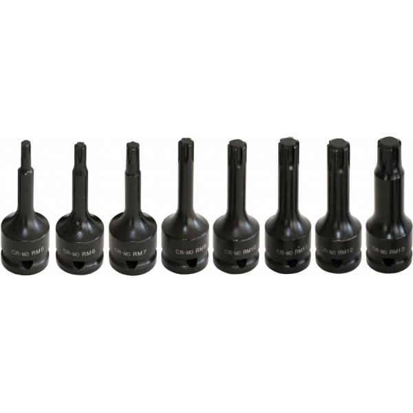 Ribe profiiliga 80 mm pikad 1/2″ löökotsikud. Valmistatud spetsiaalsest CrMo eriterasest. PU-kihiga plastkohvris.