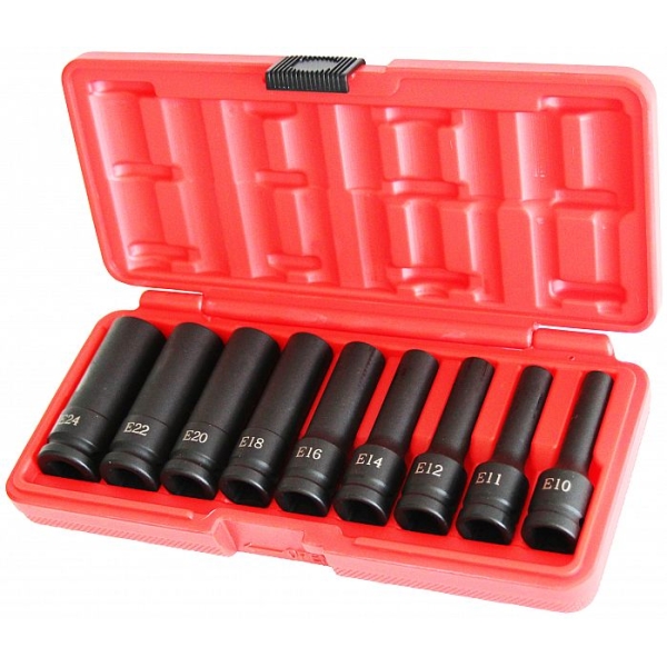 75 mm pikkuste Torx löökpadrunite komplekt. CrMo eriteras. Fosfaaditud pinnatöötlus. Palstkohvris.