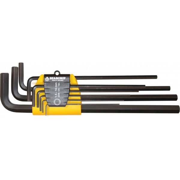 Klassikalised L-kuuskantvõtmed. Valmistatud CrV eriterasest, fosfaaditud pinnatöötlus. Plasthoidikus.