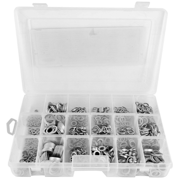 Spetsiaalsest alumiiniusulamist valmistatud tihendusseibide komplekt. Kindel ja tihe liides. Komplektis mõõdud 3x7x1,5-4x8x1,5-5x6x1,5-16x22x1,5-14x22x1,5-14x20x1,5-6x10x1,5-6x11x1,5 mm.
