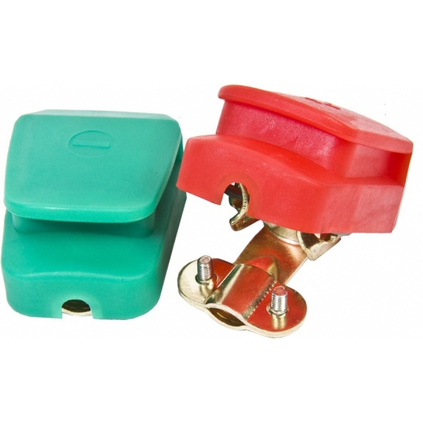 Akuklemmide komplet. Lihtne surulukustuse süsteem, mis ühtlasi katab akuklemmi plastkaanega. Soovitame kasutamiseks akudel, mis tihti jäävad seisma ja mõistlik oleks akuklemmid akult lahti võtta.