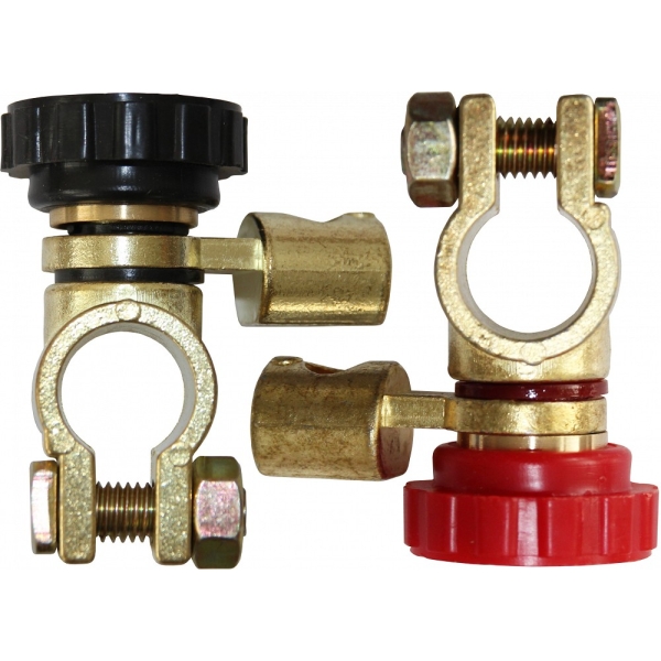 Massilüli põhimõttel nupust keerates kontakti ühendav / lahutav. Komplektis + ja – klemmid.