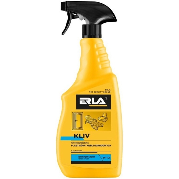 Erla Kliv on professionaalne plasti, linoleumi, kummi ja kunstnaha puhastusvahend. Suurepärane vahend plastikust aia-, terrassi- ja tehnorotangist mööbli puhastamiseks. Eemaldab tõhusalt erinevat tüüpi mustuse aknaraamidelt, elektroonikalt ja kodumasinatest. Ideaalne koduseks ja professionaalseks kasutamiseks. Meeldiva värske lõhnaga.