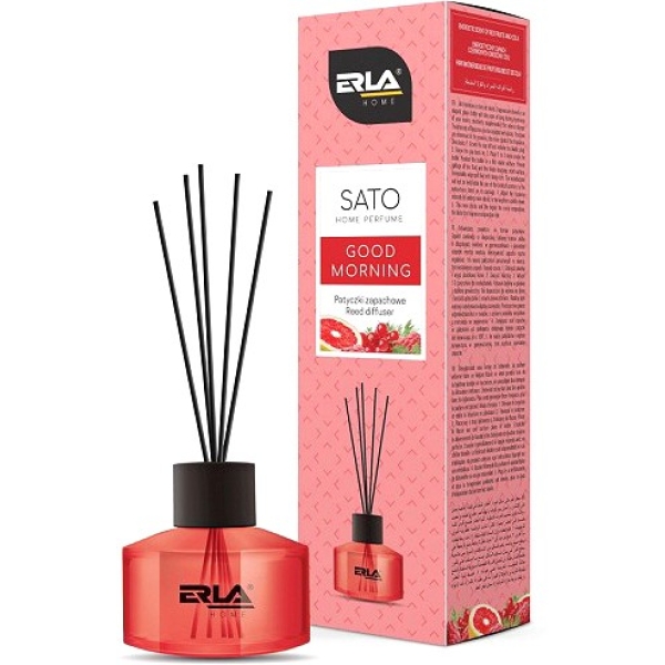 Erla Sato on stiilne õhuvärskendaja pulkadega lõhna hajuti kujul. Elegantne ja praktiline. Tänu sellele saate hõlpsalt värskendada ja kaunistada ruumi, kodus, kontoris ja kus iganes soovite. Ainulaadsed aroomikompositsioonid muudavad sisekliimat ja täidavad selle lõhnaga, mis kestab kuni 6 nädalat. Erla Sato õhuvärskendajat saate edukalt kasutada ka soovimatute lõhnade maskeerimiseks. Lõhnaga küllastunud pulgad eraldavad aroomi järk-järgult. Erla Sato lõhna intensiivsust saab pulkade hulgaga reguleerida. Mida rohkem pulki on essentsi kastetud, seda tugevam on lõhn. Suurtes ruumides saab SATO õhuvärskendajaid omavahel kombineerida, et luua ainulaadseid aroomikompositsioone.
