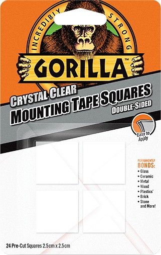 Gorilla Mounting Tape Squares teibiruudud sobivad kasutamiseks plastikul, metallil, puidul, klaasil, kivil, keraamikal ning paljudel teistel pindadel. Läbipaistvad kahepoolsed ruudud kleepuvad nii siledatele kui ka ebatasastele pindadele.
