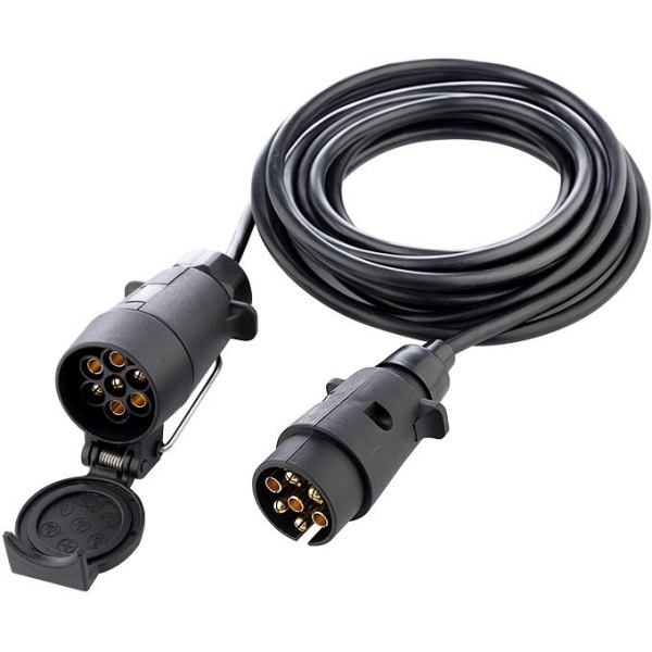 Elastne pikendusjuhe haagiste ja järelkärude ühendamiseks sõidukiga. Kaablil on 7-kontaktiga isane ja emane pistik.