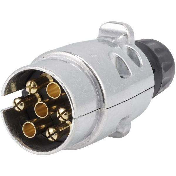 Vastupidavast alumiiniumist 7-piniga haagise pistik, mis vastab DIN ISO 1724 standardile.
