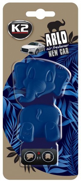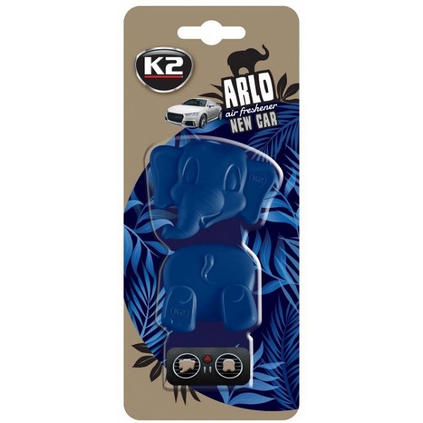 K2 ARLO NEW CAR on polümeerelevandi kujul olev autolõhn mis toob teie autosse rõõmsa atmosfääri ja kauakestva atraktiivse lõhna. Õhuvärskendaja koosneb kahest elemendist, mis on varustatud klambritega ja mis paigaldatakse õhuavadesse. Saate selle paigaldada nii, nagu soovite. Teie käsutuses on elevandi pea ja selg. Kuhu ja kuidas need paigutada, sõltub täielikult teie loovusest. Õhuvärskendajas kasutatav polümeermaterjal ei määri käsi, see on täiesti ohutu autos kasutatavale plastikule ja nahale.