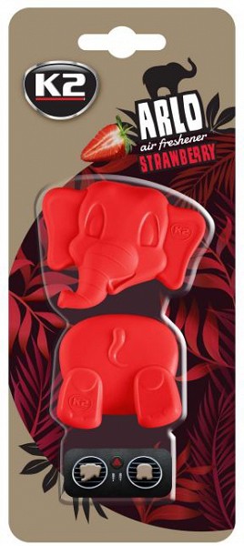 K2 ARLO STRAWBERRY on polümeerelevandi kujul olev autolõhn mis toob teie autosse rõõmsa atmosfääri ja kauakestva atraktiivse lõhna. Õhuvärskendaja koosneb kahest elemendist, mis on varustatud klambritega ja mis paigaldatakse õhuavadesse. Saate selle paigaldada nii, nagu soovite. Teie käsutuses on elevandi pea ja selg. Kuhu ja kuidas need paigutada, sõltub täielikult teie loovusest. Õhuvärskendajas kasutatav polümeermaterjal ei määri käsi, see on täiesti ohutu autos kasutatavale plastikule ja nahale.