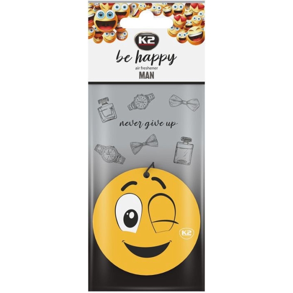Rõõmsameelne kahepoolse graafikaga tselluloosit meesteparfüümi lõhnaga õhuvärskendaja – üliõhuke ja uskumatult imav, et saaksid nautida lõhna võimalikult kaua. Õhuvärskendaja pakendit saab järk-järgult eemaldada, et lõhn püsiks veelgi kauem.